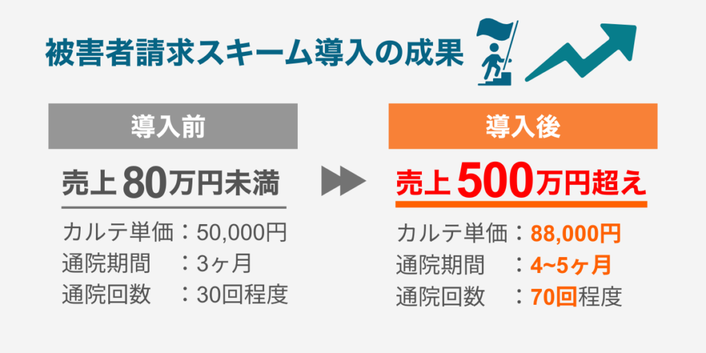 また、整骨院・接骨院にとっても、治療計画を立てやすく、安定した治療期間を確保できる点は大きなメリットです。結果として、患者様満足度の向上につながり、交通事故施術における売上の安定・向上にも寄与します。