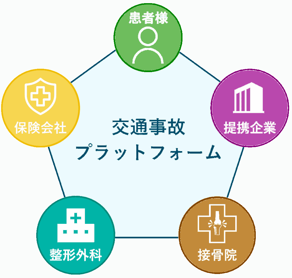 全国の接骨院が最短で交通事故に強くなれるよう、豊富な成功事例とテンプレート、整形外科連携ノウハウ、士業パートナーとの協業体制を整えています。